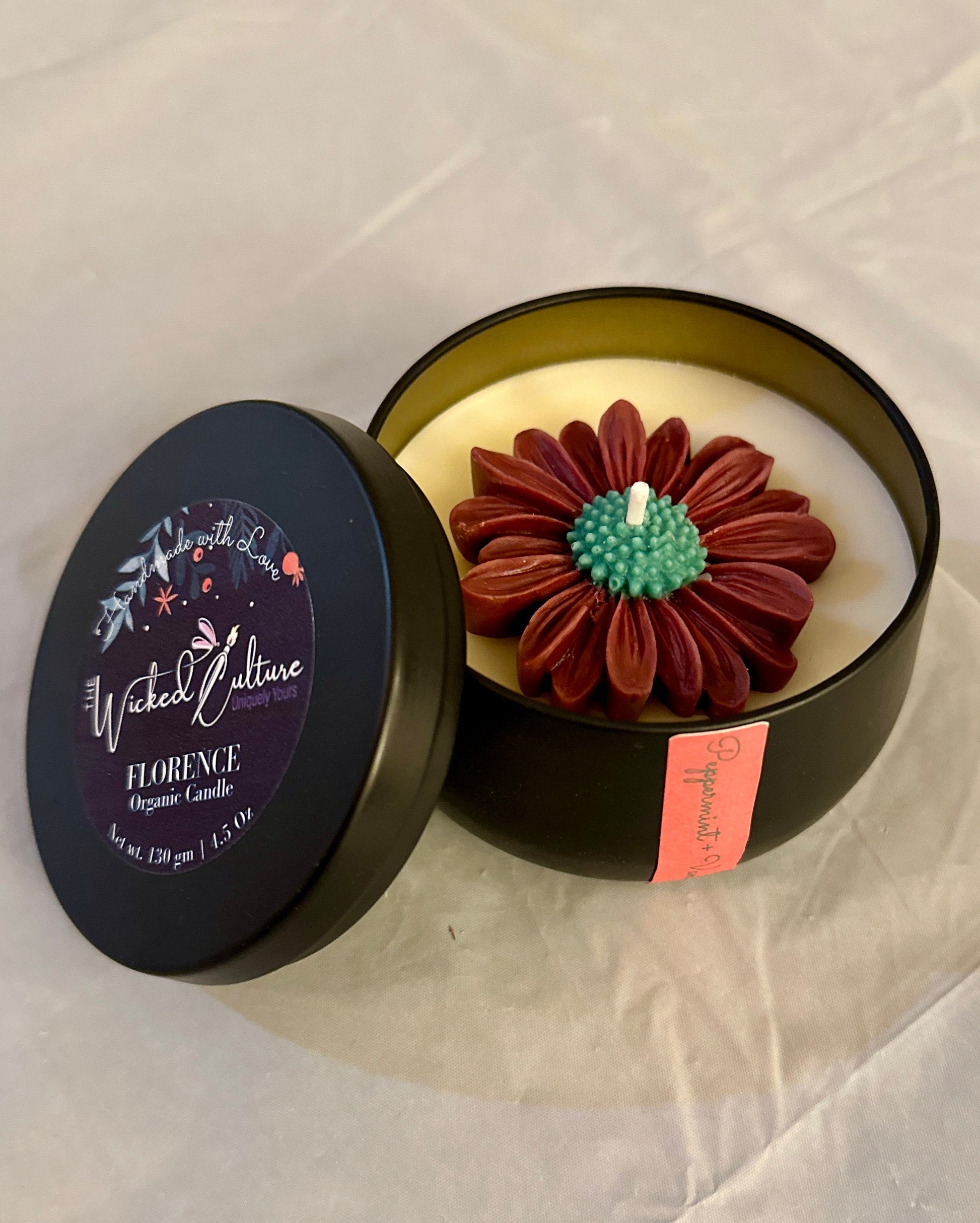 Florence Collection: Organic Scented Handcrafted Candles with flower on top